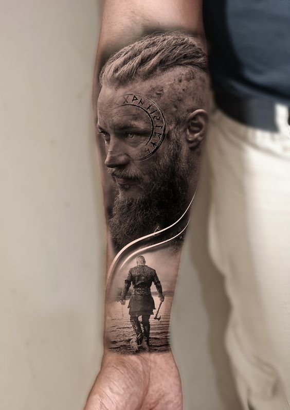 - Forearm: Perfect for detailed images such as drakkars (Viking ships), runic symbols, or portraits of warriors. This spot allows for easy showcasing of the tattoo, making it visible and expressive.