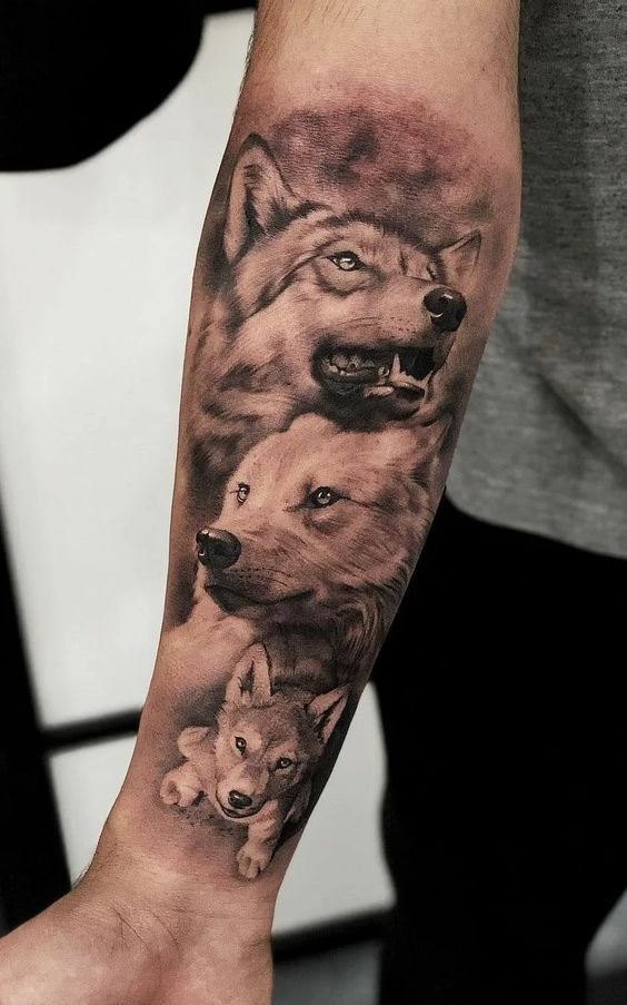 The wolf tattoo carries a rich tapestry of meanings, embodying the spirit of freedom, strength, and the deep bonds of family and loyalty.
